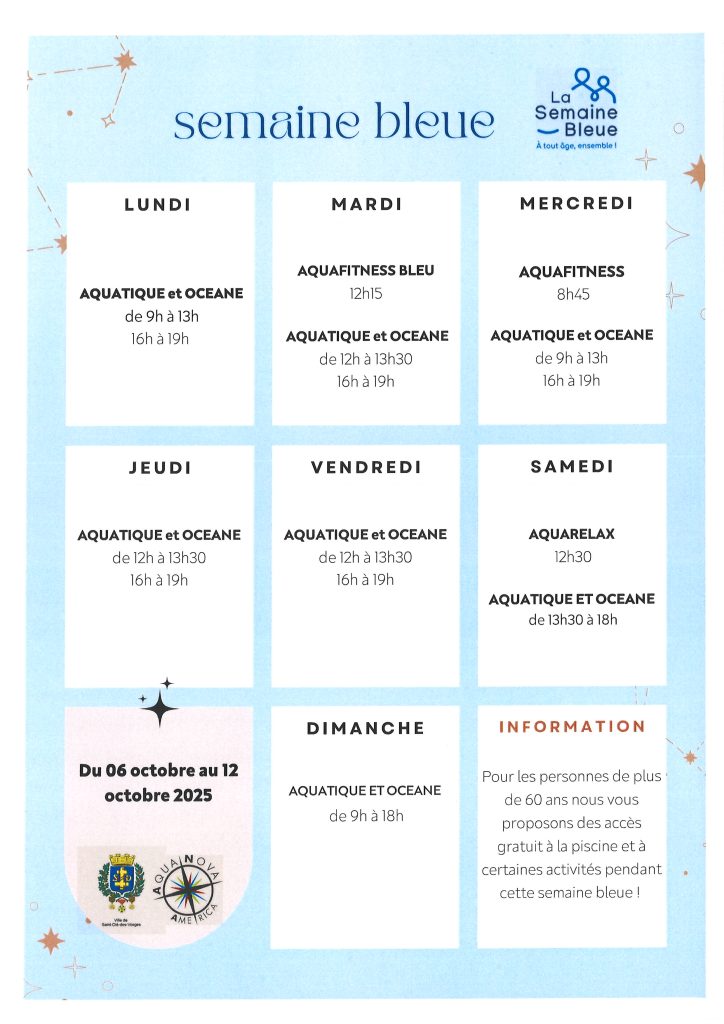 SEMAINE BLEUE DU 6 AU 12 OCTOBRE 2025 POUR LES PERSONNES DE PLUS DE 60 ANS