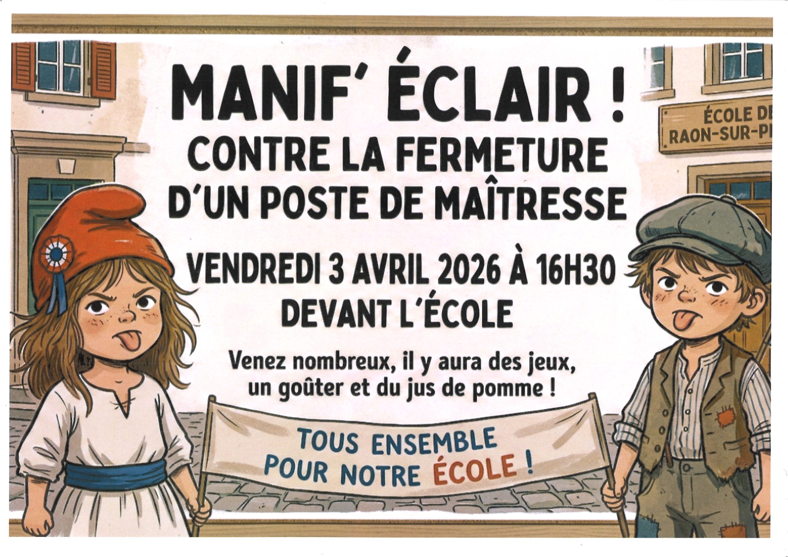 MANIFESTATION CONTRE LA FERMETURE D’UN POSTE A l’ECOLE DE RAON SUR PLAINE