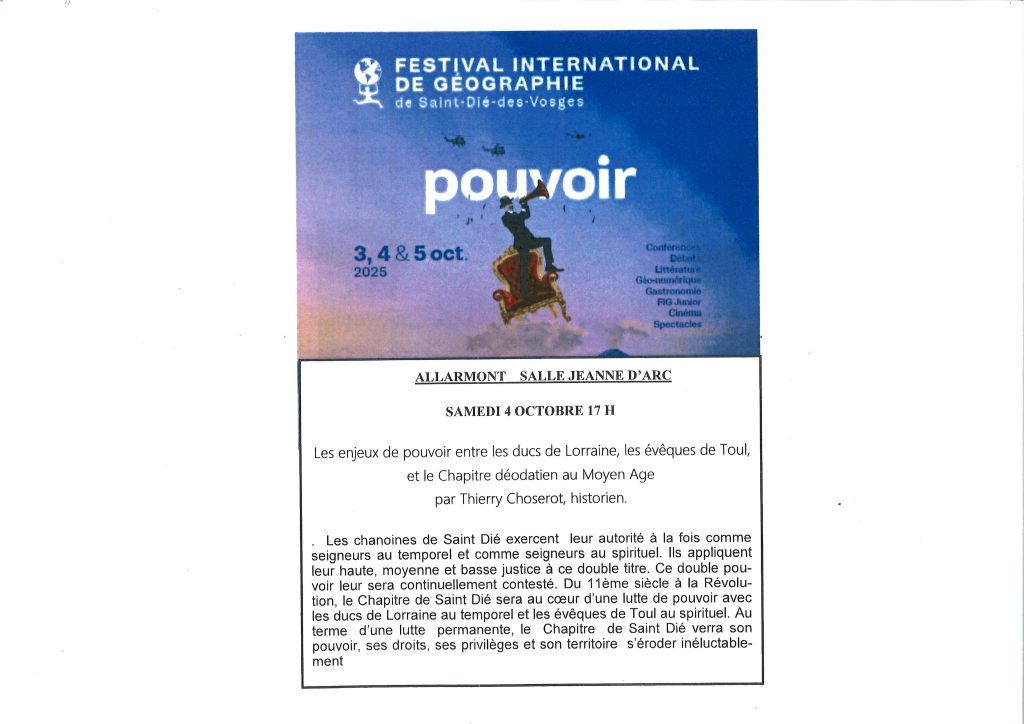 FESTIVAL INTERNATIONAL DE GÉOGRAPHIE SAMEDI 4 OCTOBRE 2025 A 17H A LA SALLE JEANNE D’ARC D’ALLARMONT
