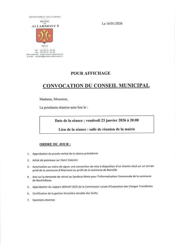 Suite à l’arrêt de la commercialisation de l’ADSL et des lignes cuivre à partir du 31 janvier 2026 sur Allarmont 88 , ainsi que la liste des intervenants qui seront présent(e)s dans votre commune entre le 16 Janvier 2026 au 31 Janvier 2026 :