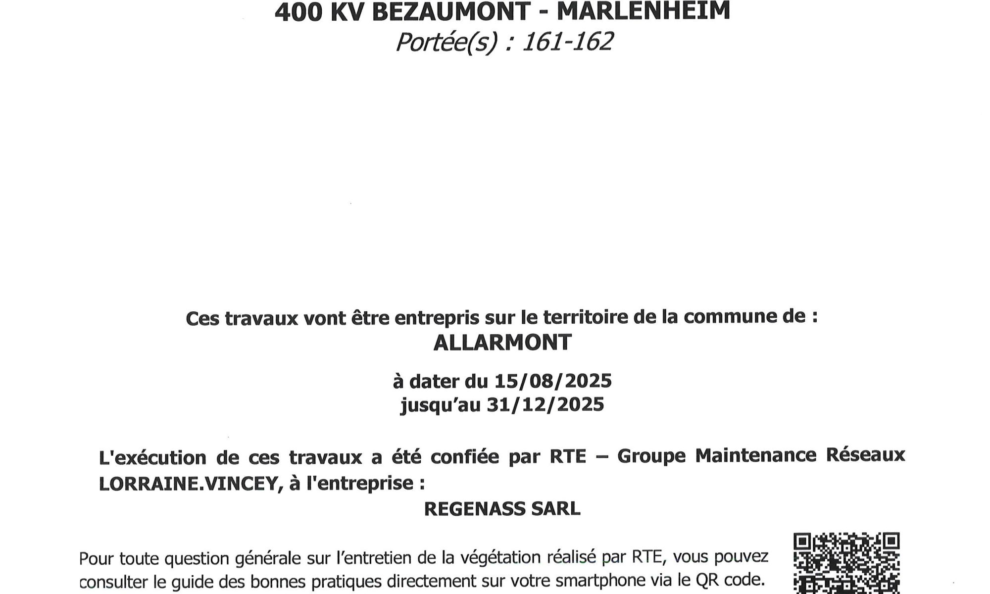 AVIS TRAVAUX FORESTIERS SUR LES LIGNES A HAUTE TENSION